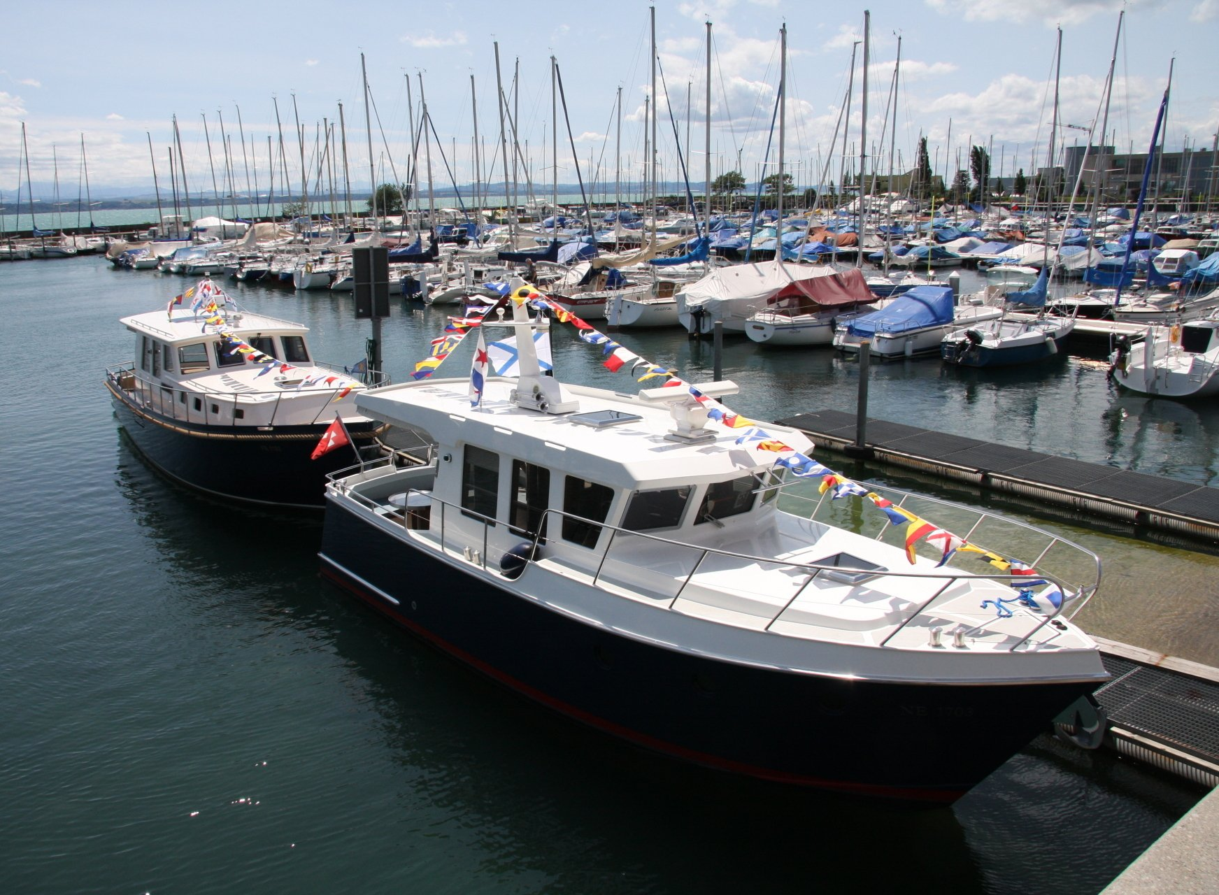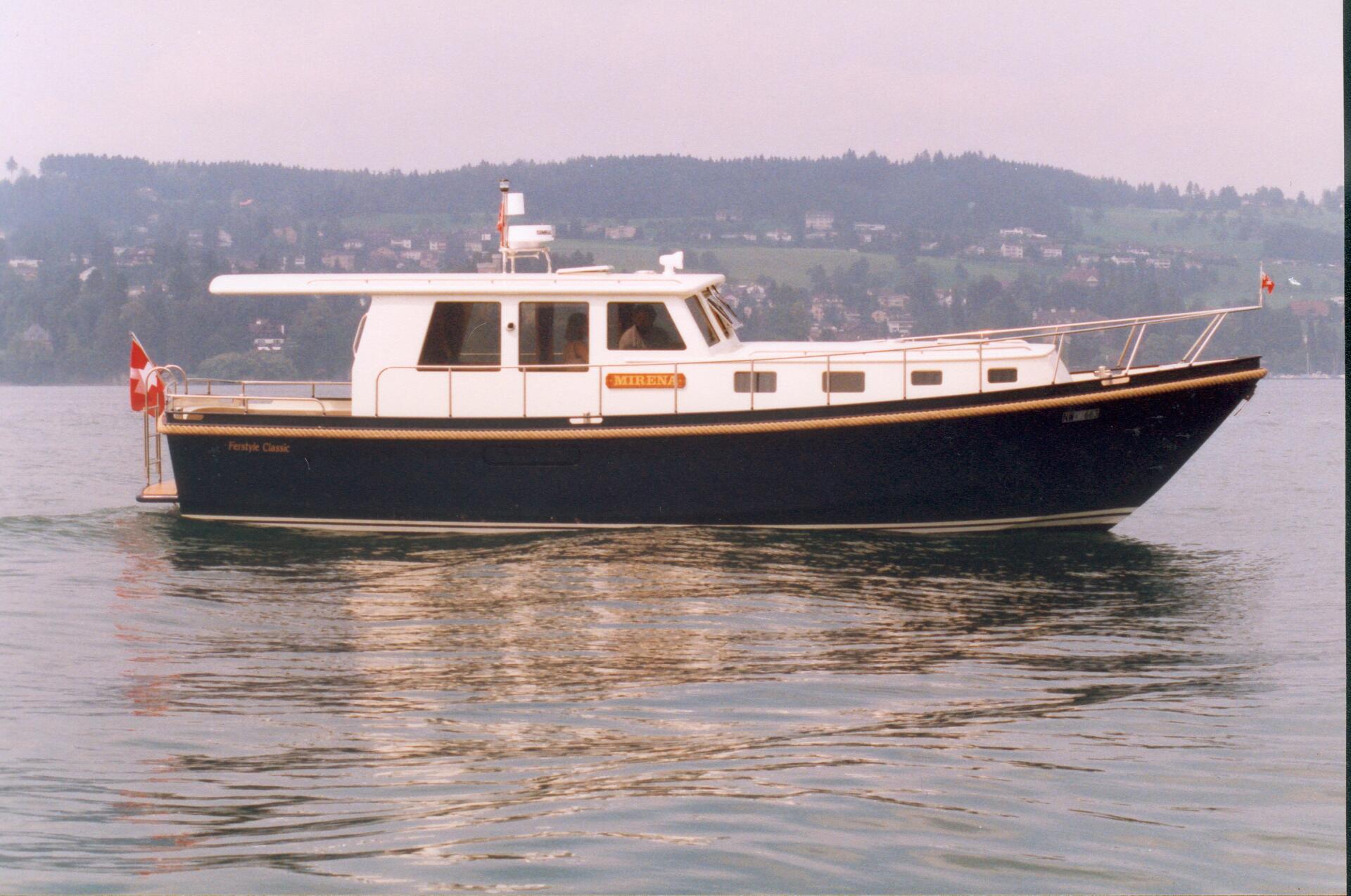 Privatboot nach Kundenwunsch mit kompletter Isolierverglasung für eine Ganzjahresnutzung. Überholung 2022: Neues Teak-Deck und Teak-Badeplattform, neue Scheiben uvm.