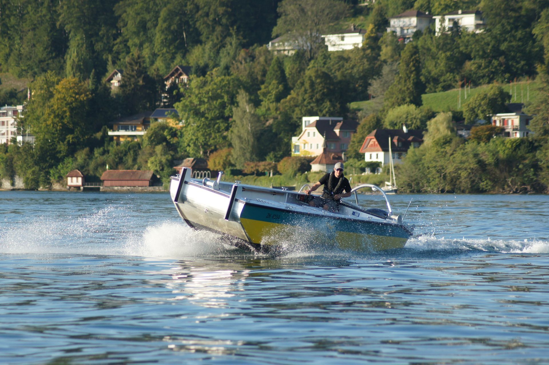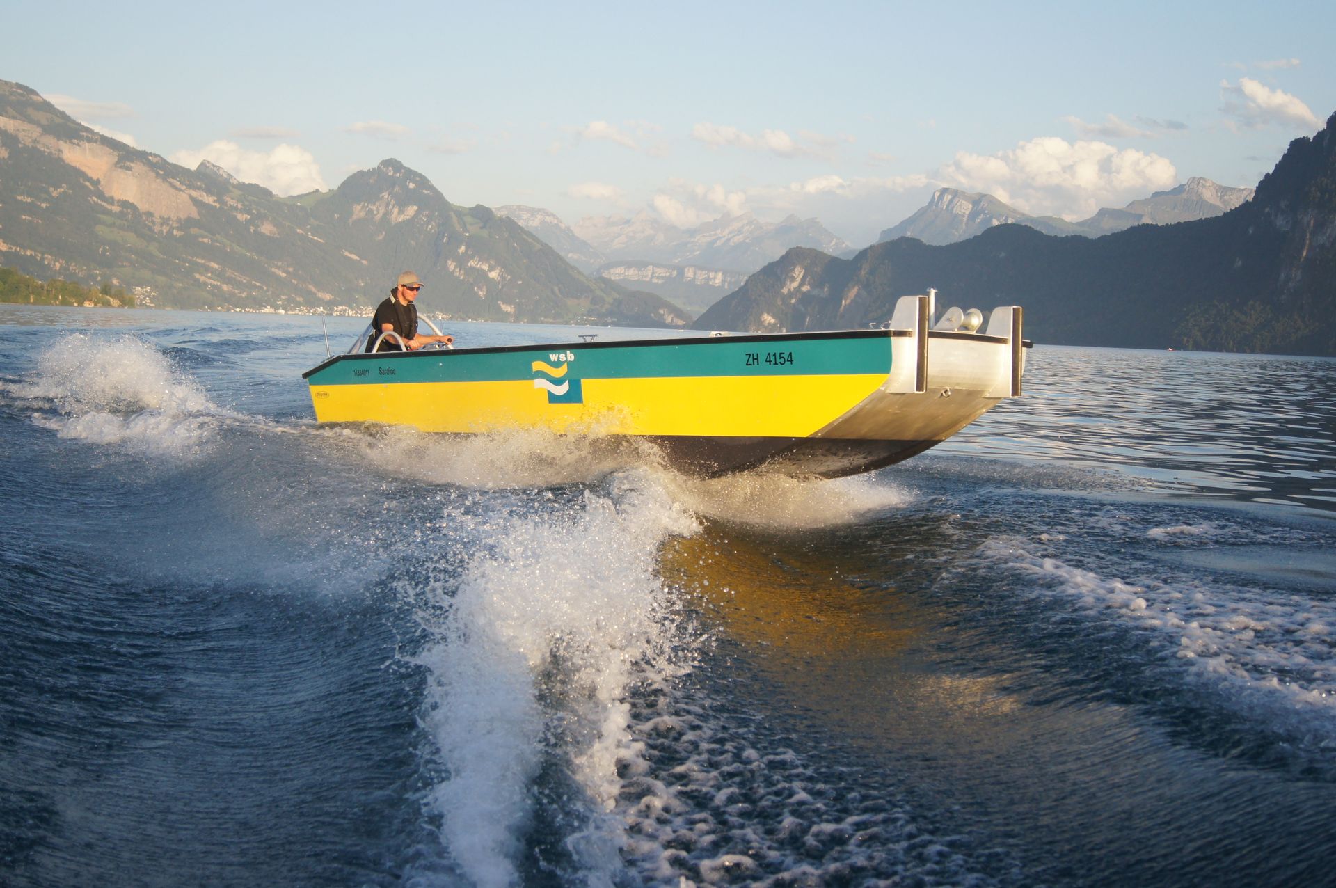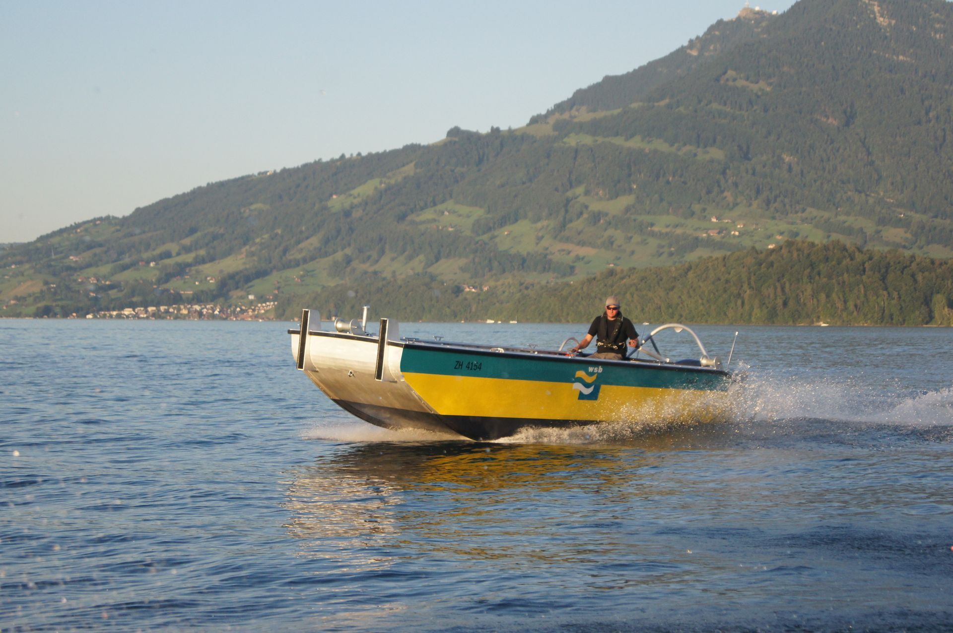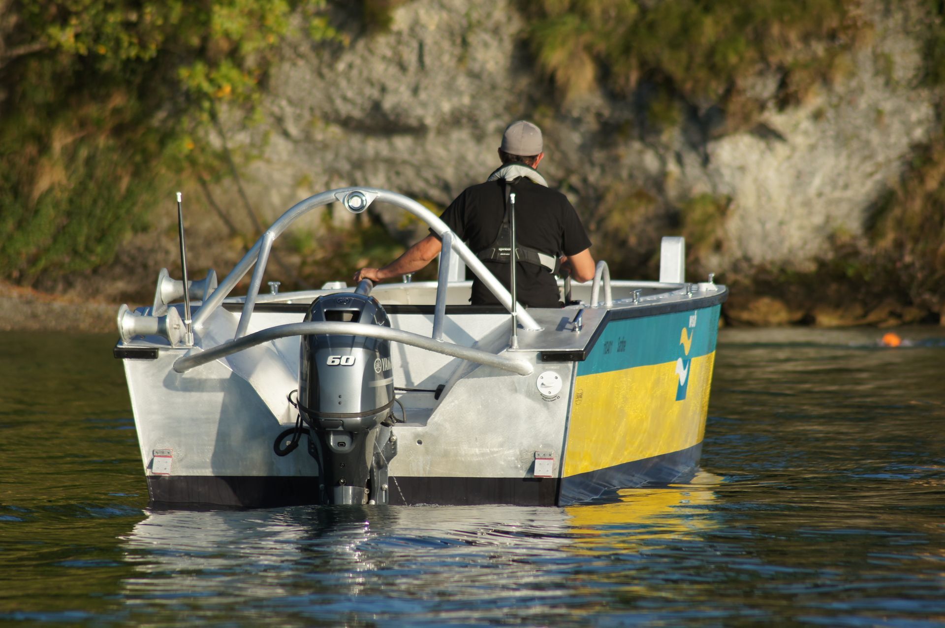 Das Arbeitsboot ist komplett selbstlenzend und unsinkbar. Die Katamaran-Bauform ermöglicht eine hohe Stabilität und eine solide Kursfahrt.